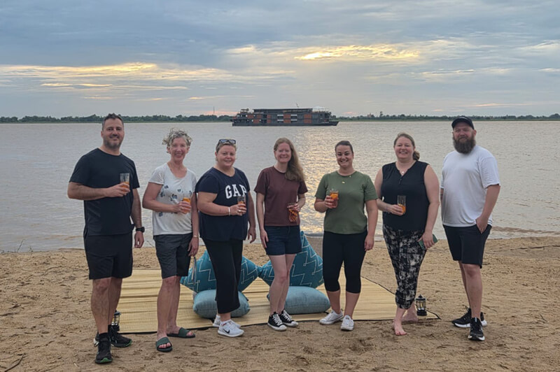 Our advisors toasting to a one-of-a-kind journey through Vietnam and Cambodia, hosted by Aqua Expeditions.
